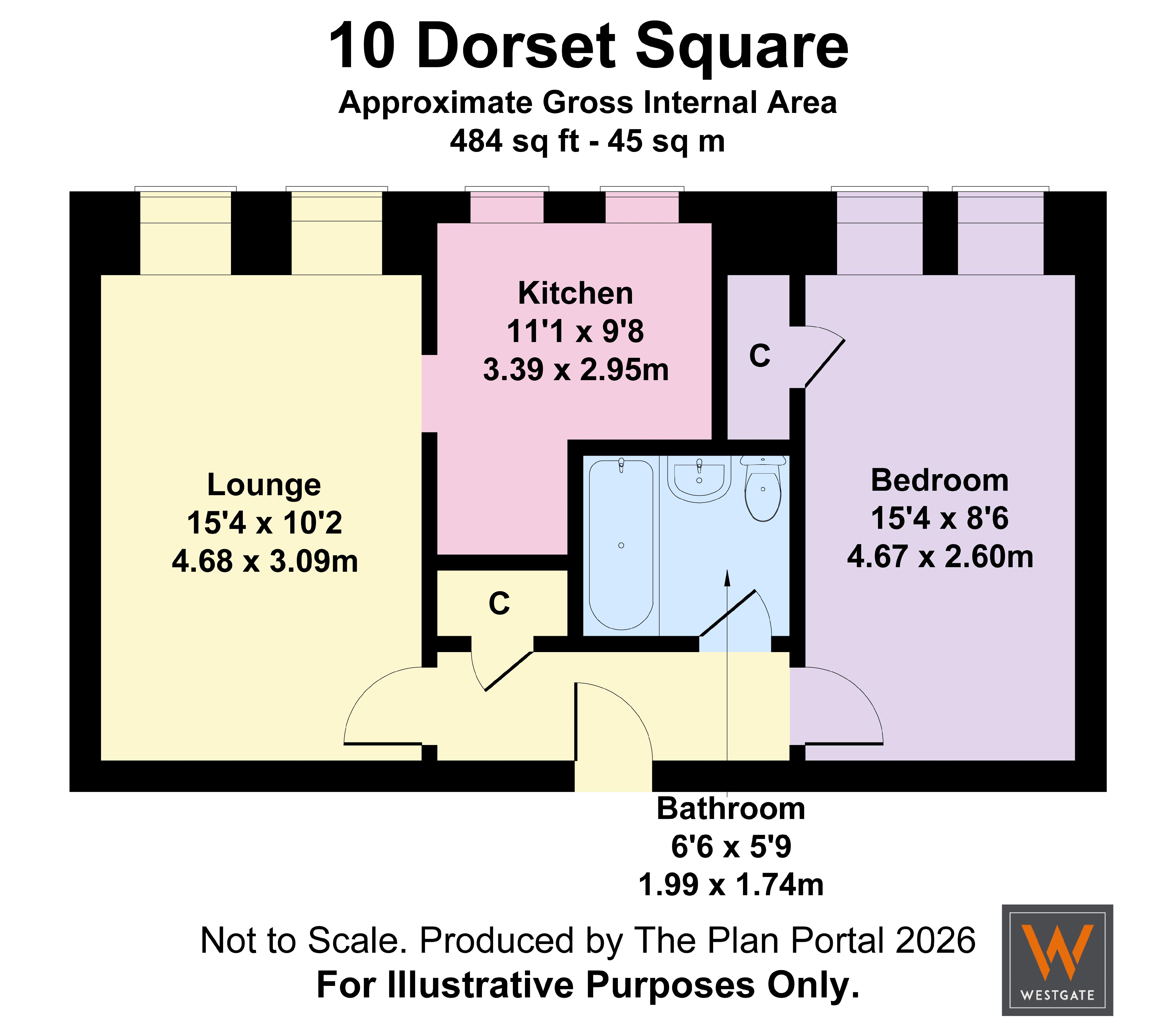 The layout of this property includes reception hallway with two storage cupboards, generous lounge, spacious kitchen with range of wall and floor units, double bedroom with storage cupboard and family bathroom.
